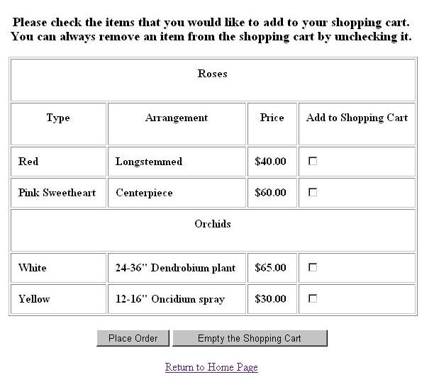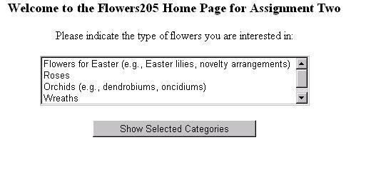 if the user selected "Roses" and "Orchids", the following web page would